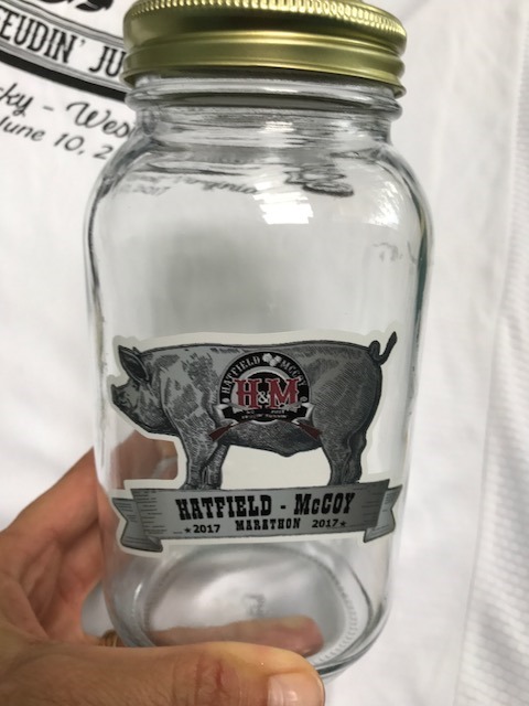 SWAG?  Unisex tech shirt & a mason jar with the race logo.  I love unique SWAG!