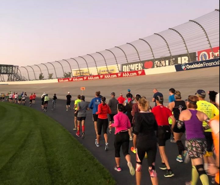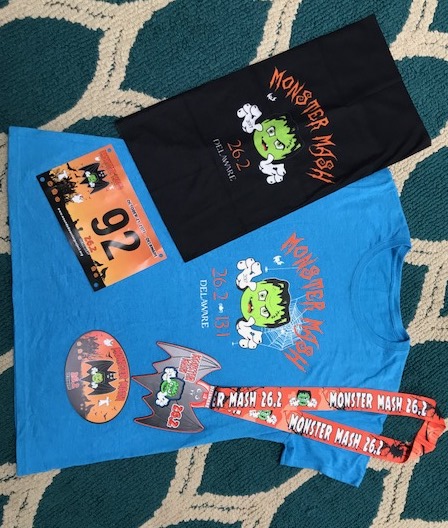 The race was advertised as fast & flat. As a Midwest gal, I know flat. Any race that claims to be flat, will probably have more hills than I can get when I make an effort to FIND hills to run. I wasn’t sure what to expect with this race. I will say that it was pretty flat. There were a few rollers to/from the ATT. Once on the ATT (where we ran 21 of the 26.2 miles), it was pretty flat. This was an old rail trail. So the inclines/declines were not visible, you’d just feel it in your legs. On a slight decline, you could feel the load lighten and the pace got easier. On the incline, you couldn’t really “see” it but you could tell you were going up because it took more effort to hold the pace. But honestly, I heard some people complain post race about the elevation, Garmin showed 735 ft of gain, Strava showed 819 ft for the entire race. Small gains & losses over time.