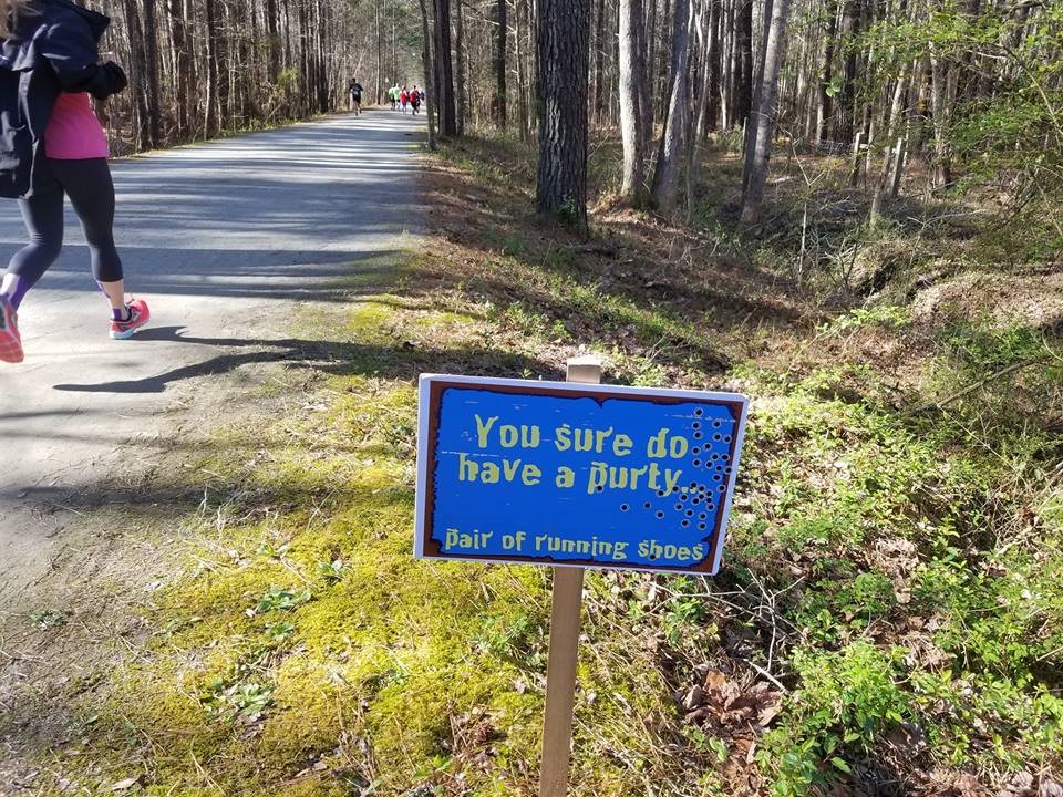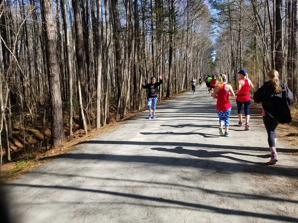 We left Thomas Park with an incline to get out of the park and onto the road. Key to remember because that’s a downhill to the finish line! Couple other rolling hills in the 2.5 miles from the park to the American Tobacco Trail. Then the marathoners had 21 miles on the ATT. Very few turns. If you are ever afraid of getting lost, this is the type of race for you. There was never any question as to where to go or where to turn. It was very well ran, volunteers were great. All road crossings were patrolled.