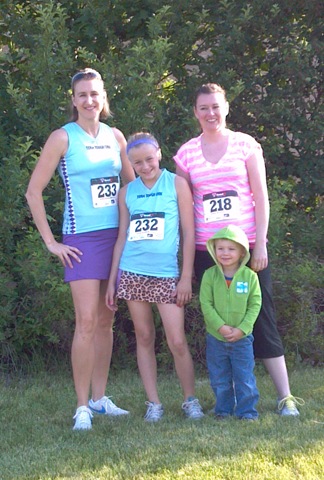 The race was very family friendly and we took the entire family & a few extras!  Aby, Michael & Jackie are below in the first photo.  Me, Aby & Nicki & Michael are in the second photo.  Aby & I were rocking our Team Tough Chik singlets although neither of us were feeling too tough after this race!