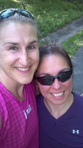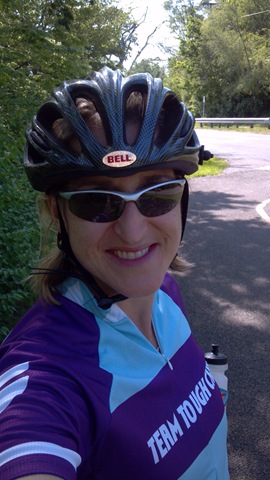 The above photo is not the best, it’s a direct result of Aby’s photo session at the bike shop on Thursday night, but it gave me giggles after a quick WTF moment of seeing the color “splashes”.  The before/after photos below are a bit better.  I’m a “little” disheveled “after” but still smiling!  Yes, that is the Team Tough Chik bike jersey if you were wondering.
