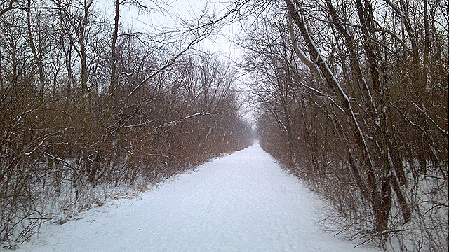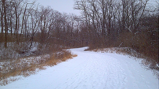 I was very anxious to take the last 9 miles outside, even though by the time I got out there it was blowing and snowing pretty good.  The actual temp was 18 and the “feels like” temp was 5.  It was cold.  I struggled thru the snow.  I struggled with the cold.  My feet hurt. I was slower than slow.  I contemplated going back home to the dreadmill.  But I really loved the views.